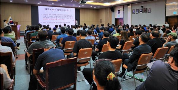 나주시는 지난 12일 시청 대회의실에서 전라남도가 주최하고 나주시 주관으로 외국인 근로자를 고용하는 기업, 일반사업장, 계절근로자 고용주 등 200여 명을 대상으로 노동인권 교육을 진행했다고 밝혔다.