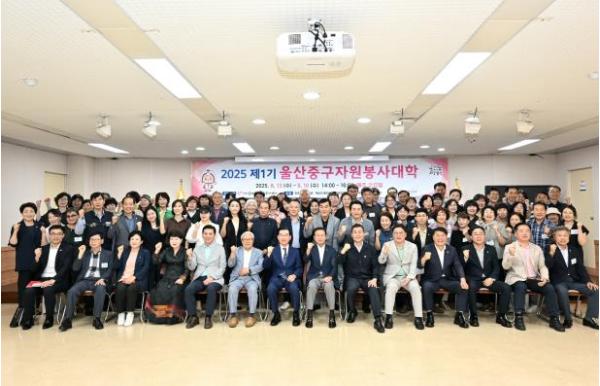 (사)울산중구자원봉사센터가 8월 13일 오후 2시 울산 중구 민방위교육장에서 ‘2025년 제1기 울산중구자원봉사대학 입학식 및 개강식’을 개최했다.