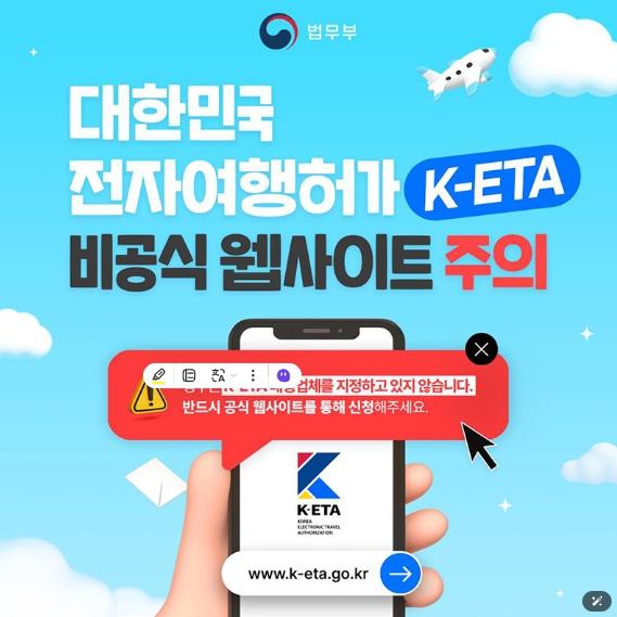 법무부, 대한민국 전자여행허가 K-ETA 비공식 웹사이트 주의