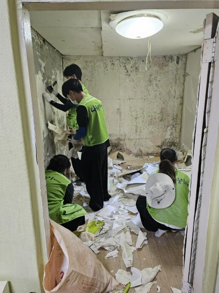 이번 주택 수리는 남서울대학교(지도교수 정건채) 대학생 봉사단과 외부 전문가로 구성된 봉사단체가 참여해 도배, 장판 교체, 주방 개보수, 청소 등 전반적인 집수리 활동을 펼쳤다.