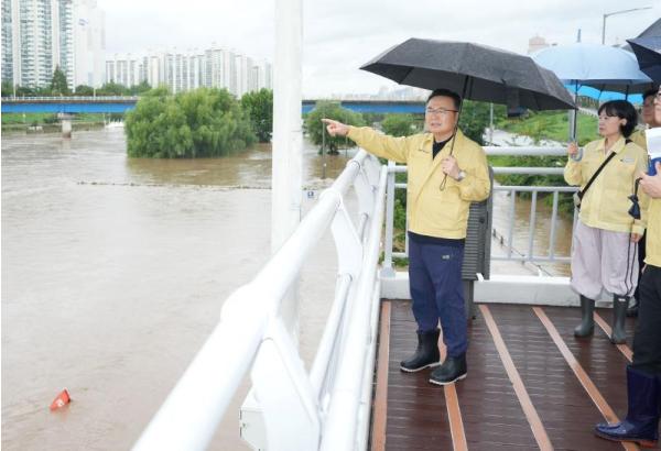 류경기 중랑구청장, 중랑천 홍수주의보 발효에 긴급 현장 점검