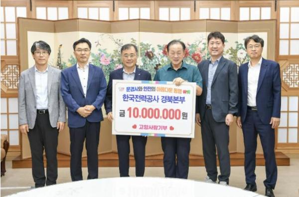 박경수 한국전력공사 경북본부장은 “문경시의 밝은 미래를 응원하며, 이번 기부금 전달을 시작으로 지역사회와 더욱 긴밀하게 소통하고 협력해 나가겠다”며 “앞으로도 공공기관으로서의 역할과 책임을 다하겠다”고 전했다.