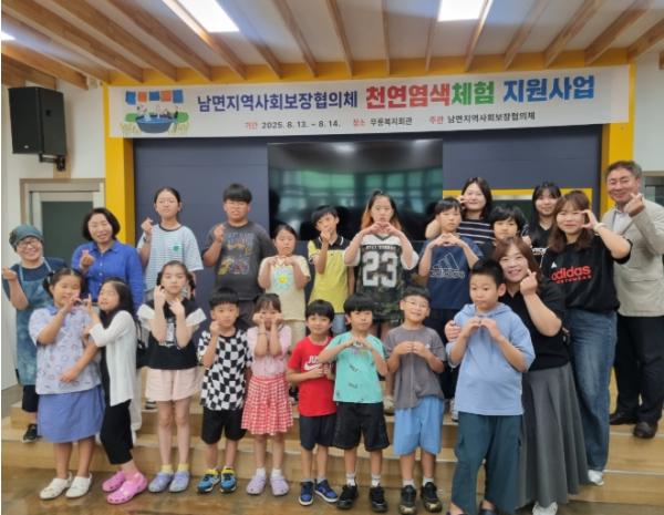 남면지역사회보장협의체(민간위원장 김수경)는 남면 별빛달빛지역아동센터와 함께 2025년 8월 13일부터 14일까지 남면 무릉복지회관에서 ‘천연 염색 체험 행사’를 진행했다.