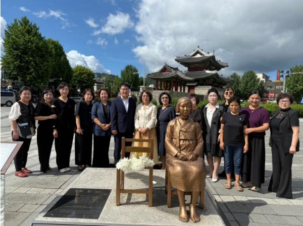 제9회 일본군 위안부 피해자 ‘기림의 날’을 맞아 연 이날 헌화 행사는 전주 평화의소녀상건립 시민추진위원회(대표 방용승) 위원들과 전주시여성단체협의회(회장 온은아) 회원 등 시민 20여 명이 함께했다.