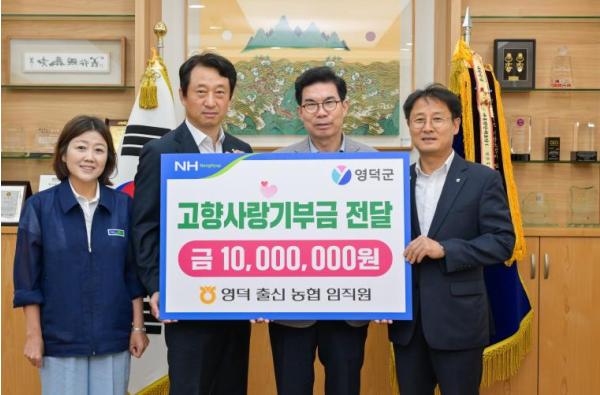 [한국제일신문, 김성옥기자] 영덕군 출신의 농협중앙회 임직원이 지난 3월 말 경북산불로 큰 피해가 발생한 고향을 돕고자 지난 13일 영덕군을 찾아 성금 1,000만 원을 전달했다.