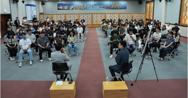 토크쇼 형식으로 진행한 행사에는 윤병태 시장이 직접 대담자로 나서 직원들과 허심탄회하게 의견을 나눴다.