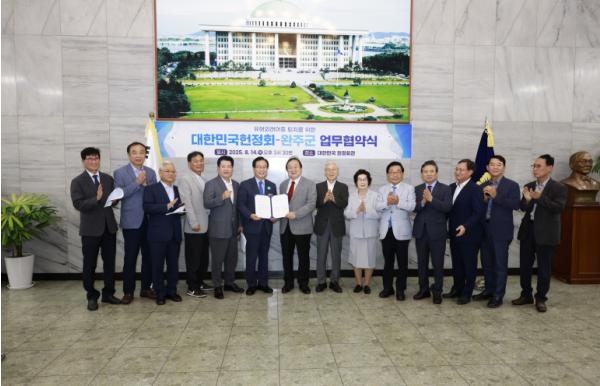[한국제일신문, 김성관기자] 완주군이 14일 대한민국 헌정회(회장 정대철)와 손잡고 토종 어종을 위협하는 블루길·배스 등 생태계 유해 어종 퇴치와 자원화를 위한 업무협약을 체결했다.