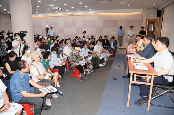 이날 간담회에는 강기정 시장, 김병내 남구청장, SRF제조시설 운영사인 청정빛고을 소장, 효천지구 주민 등 200여명이 참석했다.