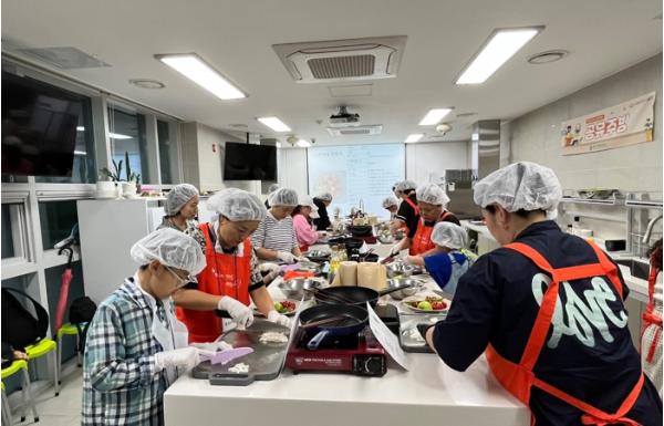 교육은 오전 10시부터 2시간 동안 금천구 박미보건지소 동네방네 이음센터에서 영양 관련 이론교육(30분)과 2가지 요리 실습(90분)으로 진행됐다. 전문 강사를 초빙해 영양소에 대한 올바른 이해와 식단 구성 방법을 배웠다.