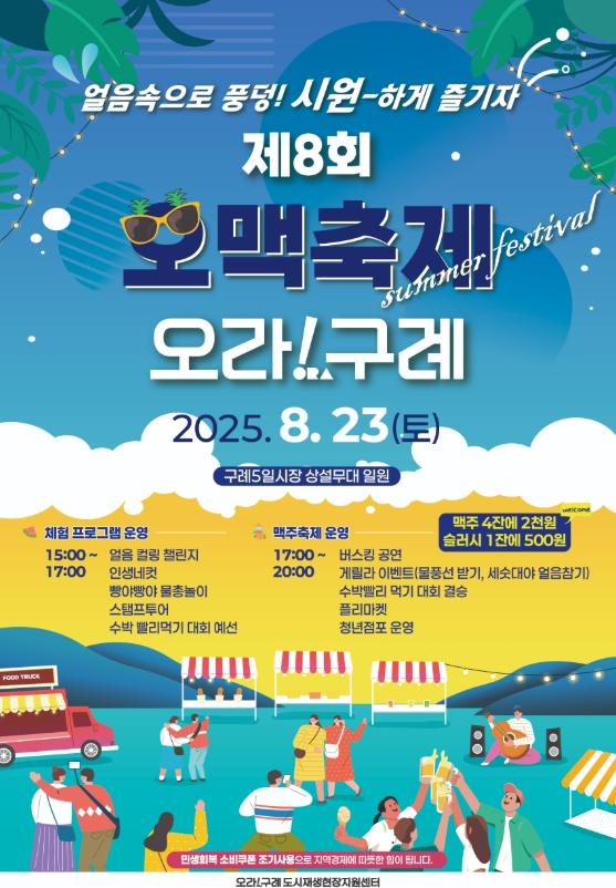 [한국제일신문, 김성옥기자] 전남 구례군은 오는 8월 23일 토요일 구례읍 5일시장 일원에서 '2025 구례 5일시장 제8회 오맥축제' 개최한다고 밝혔다.