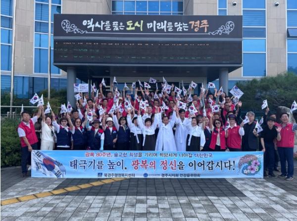 북경주행정복지센터(센터장 황훈)는 지난 13일 제80주년 광복절을 맞아안강읍 시가지에서 ‘나라사랑 태극기 달기’ 캠페인을 진행했다.