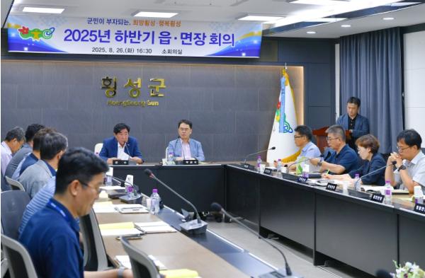 [한국제일신문, 김성광기자] 횡성군은 26일 군청 소회의실에서 '2025년 하반기 읍·면장 회의'를 개최했다.