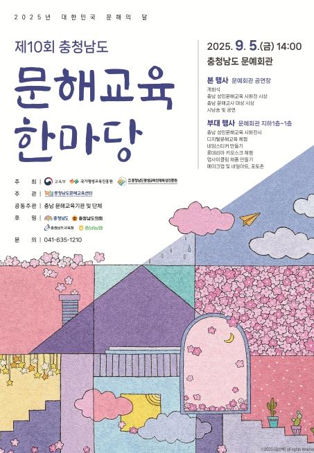 올해로 10회째 개최되는 이번 행사는 ‘문해, 세상이 달라보여요’를 주제로 충남평생교육인재육성진흥원과 교육부, 국가평생교육진흥원이 공동 주최하며, 충청남도·충청남도의회·충청남도교육청·충남농협이 후원한다.