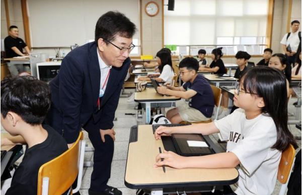 [한국제일신문, 김성옥기자] 윤건영 충청북도교육감이 27일, 서현초등학교를 방문해 다채움 기초학력 진단검사 진행 상황을 직접 점검하고 학생과 교직원을 격려했다.