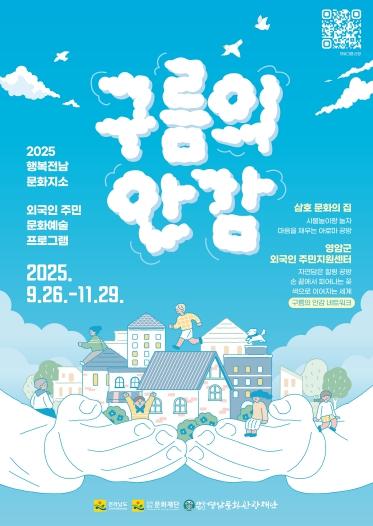 (재)영암문화관광재단은 문화예술을 매개로 외국인 주민과 지역 주민 간의 소통과 이해를 증진하기 위한 “구름의 안감”프로젝트를 오는 17일 밝혔다. 이 프로젝트는 구름 안감 속에 서로 다른 숨결들이 조화를 이루어 한 공간 속에서 새로운 꿈을 만들어 가길 바라는 관점에서 기획됐다.
