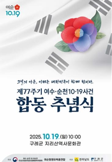 [한국제일신문, 김성옥기자] 전남 구례군은 여순사건의 역사적 의미를 되새기고 희생자와 유족들을 위로하기 위한‘여순사건 제77주기 정부주최 합동추념식’이 오는 19일 구례군 지리산역사문화관에서 개최된다고 밝혔다.