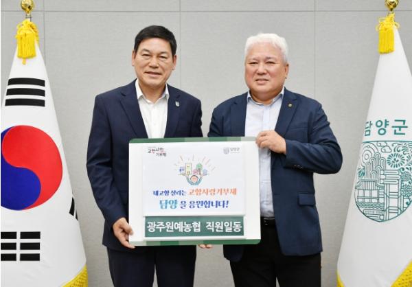 [한국제일신문, 김성옥기자] 담양군은 17일 광주원예농협(조합장 정일기)이 임직원들과 함께 고향사랑기부제를 통한 지역 나눔에 동참했다고 밝혔다.
