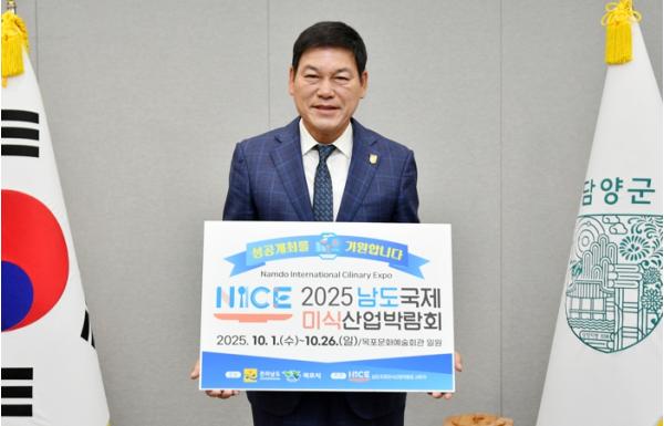 [한국제일신문, 김성옥기자] 담양군은 20일 2025 남도국제미식산업박람회의 성공을 기원하는 ‘릴레이 응원 챌린지’에 참여했다.
