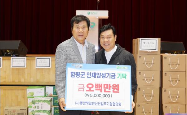 김용동 (사)동함평일반산단입주기업협의회 회장은 “우리 지역발전과 상생을 위해 우리 군 출신의 인재들에게 도움이 되길 바는 마음으로 업체들과 뜻을 모아 기탁하게 됐다”고 전했다.