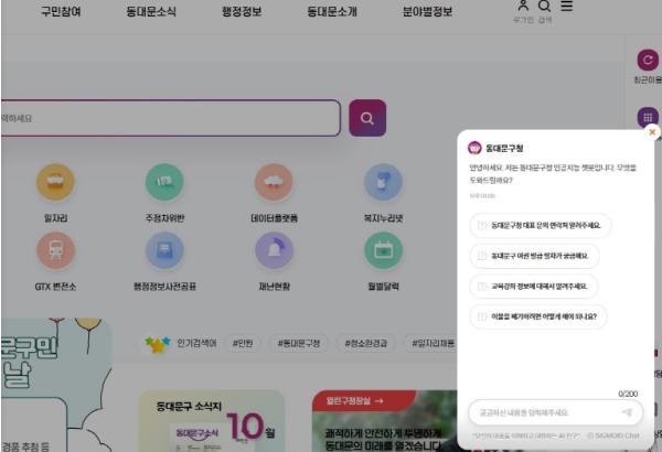 [한국제일신문, 김성옥기자] 서울 동대문구는 지난 20일부터 생성형 인공지능(AI)을 기반으로 한 누리집 챗봇 서비스를 본격 운영하고 있다고 밝혔다.