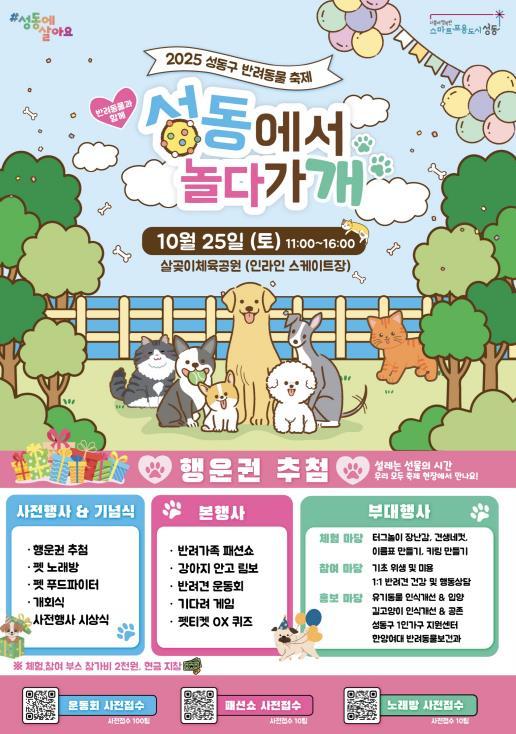 [한국제일신문, 김성옥기자] 서울 성동구는 오는 25일 살곶이체육공원 인라인스케이트장에서2025 성동구 반려동물 축제 ‘성동에서 놀다가개’를 개최한다.