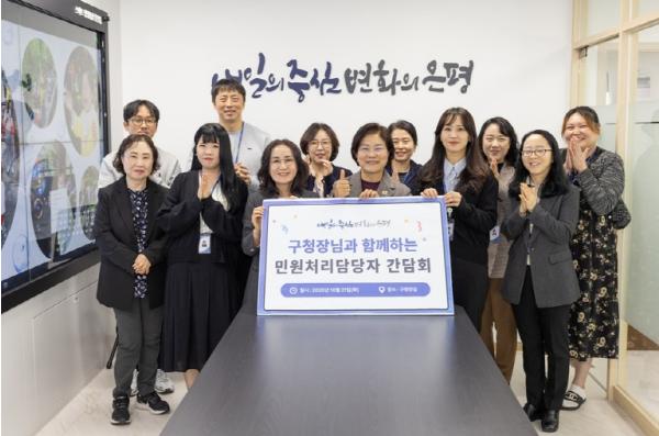이날 간담회에서는 반복 민원, 민원인의 폭언 사례 등 현장에서 겪는 어려움이 공유됐으며, 직원 보호 방안과 업무 환경 개선을 위한 다양한 의견이 논의됐다. 김미경 구청장은 “민원 최일선에서 구정을 대표하는 여러분의 노고에 깊이 감사드린다”며 직원들을 격려했다.