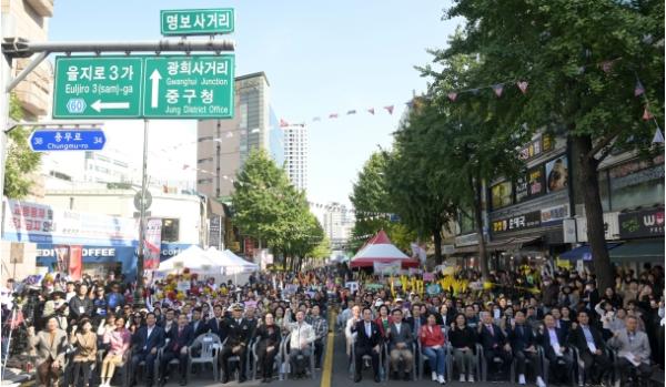 축제는 을지로3가역에서 명보아트홀, PJ호텔에 이르는 거리를 무대로 펼쳐졌다. 해군홍보대의 비보잉 공연과 풍물놀이가 흥을 돋우며 개막을 알렸다. 이어 중구의 새로운 도시브랜드 ‘이순신1545 중구’가 공식 선포됐다. 이 브랜드는 이순신 장군의 탄생 연도 ‘1545년’에서 착안해 영웅을 품은 중구가 위대한 역사의 시작점임을 의미한다.