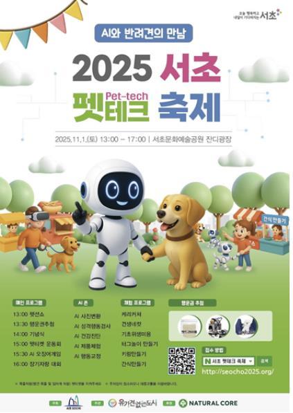 [한국제일신문, 김성옥기자] 서울 서초구는 오는 11월 1일, 오후 1시부터 5시까지 서초문화예술공원 잔디광장에서 ‘2025 서초 펫테크 축제’를 개최한다고 밝혔다.