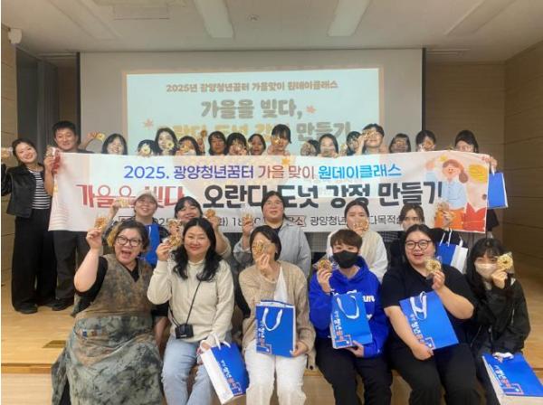 [한국제일신문, 윤진성기자] 광양청년꿈터의 가을맞이 원데이클래스 ‘가을을 빚다 – 오란다 도넛 강정 만들기’가 지역 청년들의 높은 관심 속에 성황리에 마무리됐다.