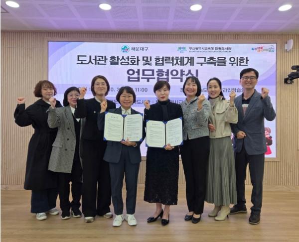 [한국제일신문, 김성옥기자] 해운대구는 10월 30일, 부산광역시립반송도서관과 도서관 활성화 및 협력체계 구축을 위한 업무협약을 체결했다.