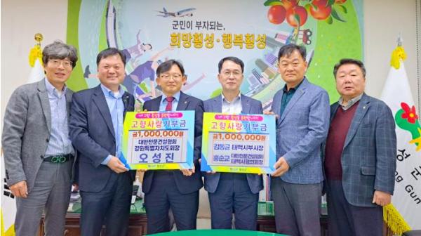 이에 화답하는 의미로 진행된 이번 횡성군 기탁식에서는 ▶김동균 태백시 부시장과 ▶홍순교 대한전문건설협회 태백시협의회장이 각각 50만 원을, ▶오성진 대한전문건설협회 강원특별자치도회장이 100만 원을 기탁하며 총 200만 원의 고향사랑기부금을 전달했다.