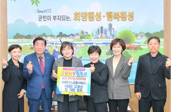 횡성군 (주)아너스금융서비스 고경순 지점장 외 직원일동, 고향사랑기부금 300만원 기탁