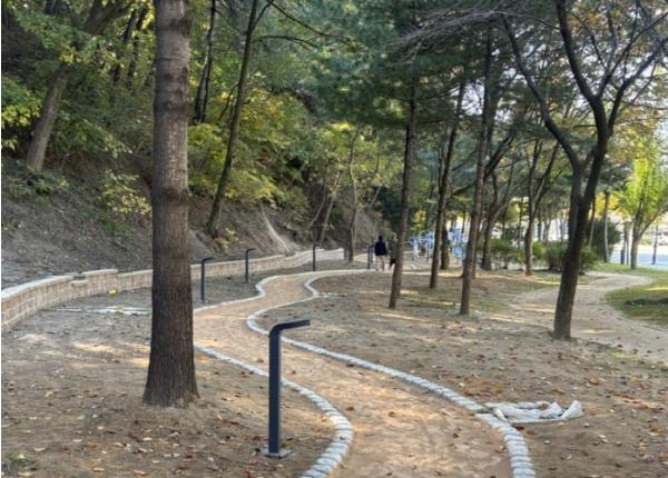 석사동 757에 위치한 석사근린공원은 지난 7월부터 3억 5000만원의 예산을 투입해 맨발길, 화장실 설치 등이 추진 중이다. 공정률은 이 날 기준 90%로 오는 30일 준공 예정이다.