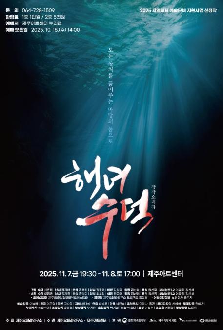 이번 공연은 ‘2025 지역대표 예술단체 지원사업’에 선정돼 제주오페라연구소와 제주아트센터가 협력한 작품으로, 시퍼런 바다를 목숨줄로 삼아 살아가는 해녀들의 삶과 그 속에 깃든 신앙, 공동체, 그리고 모성의 서사를 담았다.