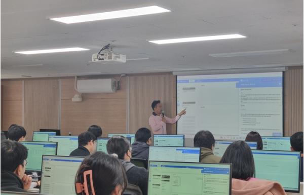 교육은 지난달 20일부터 24일까지 5일 동안 단기 집중과정으로 진행됐다. 전액 무료로 운영하며, 자격증 시험응시료까지 지원해 모집정원의 3배가 넘는 인원이 모이는 등 높은 관심을 받았다. 총 5회차의 교육에서는 인공지능의 기본개념 이해부터 프로세스 구현, 모델링 등을 폭넓게 다루며 ‘AICE Basic 자격증’ 시험에 대비한 실전 훈련을 마쳤다. 그 결과 총 30명 중 28명이 과정을 이수하고, 시험 합격률은 96%에 달했다.