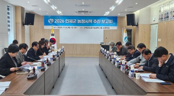 이러한 농정 시책의 성과와 향후 계획을 공유하기 위해 군은 최근 인제군농업기술센터 소회의실에서 ‘2026년 인제군 농정시책 추진보고회’를 열었다. 이번 회의에는 최상기 인제군수, 박진호 농협중앙회 인제군지부장, 지역 농‧축협장과 농업인단체장 및 관계 공무원 등 17명이 참석했다.