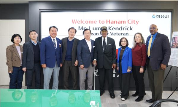 [한국제일신문, 김성옥기자] 하남시는 11월 7일, 美 아칸소주 출신의 6·25 참전용사 루마스 켄드릭(Lumas Kendrick) 씨가 국가보훈부 초청으로 한국을 방문함에 따라 하남시청을 찾았다고 밝혔다. 이번 방문에는 켄드릭 씨의 자녀 루마스 켄드릭 주니어(Lumas Kendrick Jr.), 전 아칸소 한인회장 정 나오미 씨와 하남시 재향군인회 임문택 회장이 함께했다.