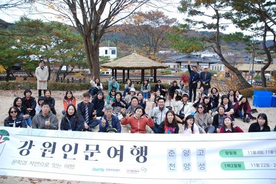 [한국제일신문, 김성옥기자] 강원관광재단은 지난 11월 8일과 9일 이틀간 춘천 일원에서 인문학 테마 여행 프로그램을 운영해 130여 명의 참가자들이 인문학 프로그램을 즐겼다고 밝혔다.