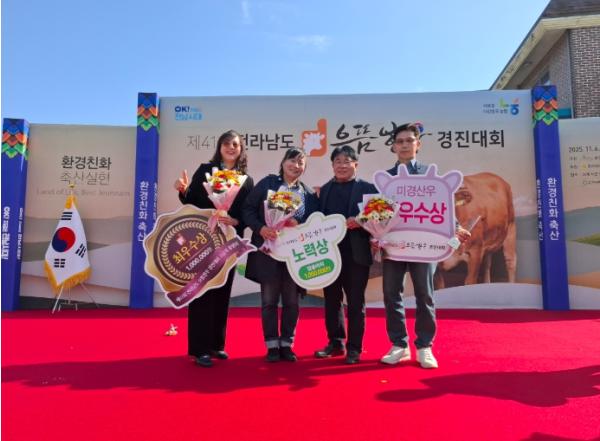 [한국제일신문, 윤진성기자] 곡성군은 지난 6일 순천광양축협에서 열린‘2025년 제41회 전라남도 으뜸한우 경진대회’에서 고급육 부문 옥과면 최하나 농가가“최우수상”, 우량한우(미경산우) 부문 목사동면 조신익 농가가 “최우수상”, 우량한우(암송아지) 부문 겸면 이금숙 농가가 “노력상”을 받는 쾌거를 이뤘다고 10일 밝혔다.
