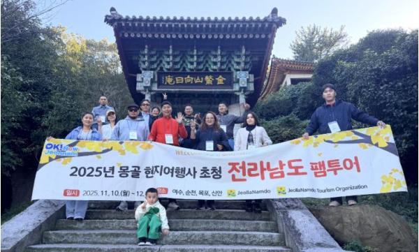 [한국제일신문, 윤진성기자] 전라남도가 12일까지 3일간 몽골한국관광협회(MOKTA) 소속 현지 여행사 15개 사를 대상으로 전남 팸투어를 진행한다.