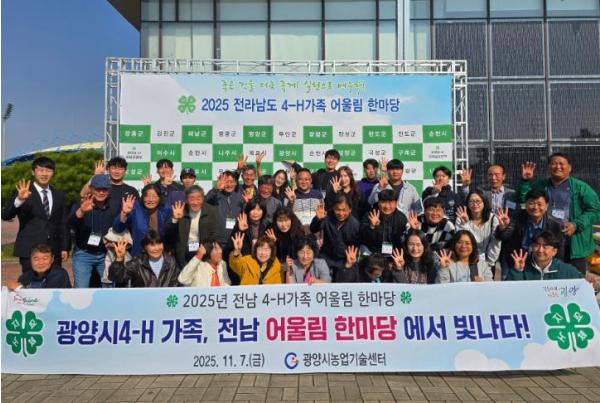 [한국제일신문, 윤진성기자] 광양시는 지난 11월 7일 영광스포티움 국민체육센터에서 개최된 ‘2025 전라남도 4-H가족 어울림 한마당’에서 광양시4-H회가 탁월한 성과로 주목받았다고 밝혔다.