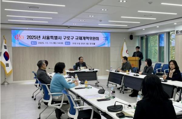 [한국제일신문, 김성옥기자] 구로구가 11월 11일 구청 본관 3층 창의홀에서 ‘2025년 구로구 규제개혁위원회’ 회의를 열고, 민간 전문가와 협력해 불합리한 자치법규 개선에 나섰다.
