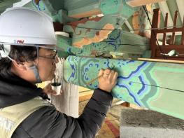 이번 사업은 국가유산청 국립문화유산연구원(원장 임종덕)이 복원한 전통 녹색안료 ‘동록(銅綠)’을 사용했다. 이는 연구원이 민간 기업에 제조기술을 이전해 생산된 안료가 문화유산 보수정비 현장에 처음으로 적용된 사례로그 의미를 더하고 있다.
