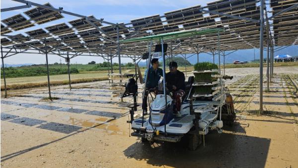 영암군은 2023년 농림축산식품부의 예산을 지원받아, 지난해 농업기술센터 직영 논 1,000㎡ 면적에 45kW 규모의 영농형 태양광 설비를 설치했다.