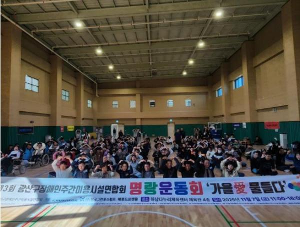 [한국제일신문, 윤진성기자] 광주 광산구가 하남다누리체육센터에서 장애인주간이용시설 10개소와 함께 ‘제3회 광산구장애인주간이용시설연합회 명랑운동회’를 개최했다.