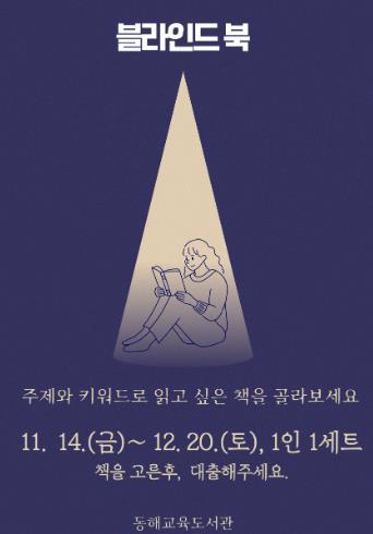 [한국제일신문, 김성옥기자] 동해교육도서관은 11월 14일부터 12월 20일까지 각 자료실에서 ‘블라인드 북 특별대출’ 행사를 운영한다.