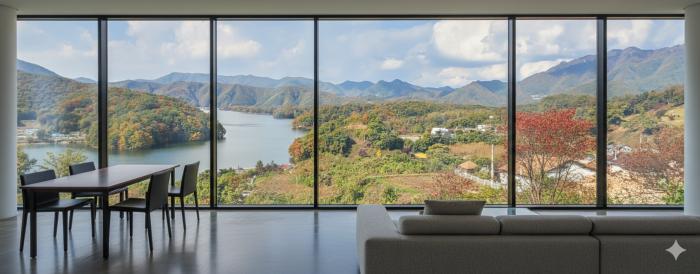 자연과 지형이 만들어낸 완벽한 조화 덕분에, 사계절 내내 변하는 풍경을 감상할 수 있으며, 도심에서는 느낄 수 없는 고요함과 쾌적함을 동시에 누릴 수 있다.