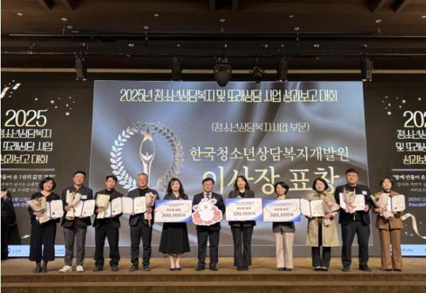 이번 수상은 성평등가족부 산하 한국청소년상담복지개발원이 전국 청소년상담복지센터를 대상으로 실시한 2024년도 종합평가 결과를 바탕으로 진행됐다. ‘2024년 종합평가 우수센터 1:1 맞춤형 코칭 프로그램’ 멘토센터로서 상담복지 운영 노하우와 사례를 전수하며 지역 간 역량 균형을 도모한 점에 대해 평가했다.