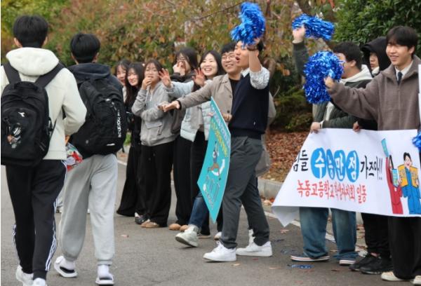 현장에는 고흥군의회, 고흥교육지원청, 고흥경찰서 등 지역 기관단체 관계자들도 함께해 수험생들을 격려했으며, 고흥군학부모연합회 회원들은 따뜻한 차를 나눠주며 수험생들의 긴장을 풀어주는 등 훈훈한 분위기를 더했다.