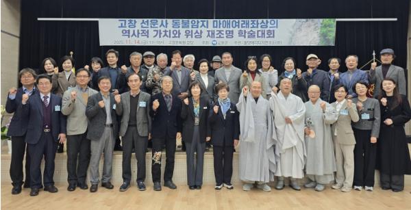 [한국제일신문, 이미란기자] 고창군과 올댓해리티지연구소가 14일 오후 고창문화원에서 ‘고창 선운사 동불암지 마애여래좌상 활성화 방안 모색을 위한 학술대회’를 열었다. 학술대회는 ‘고창 선운사 동불암지 마애여래좌상의 역사적 가치와 위상 재조명’을 주제로 열렸다.